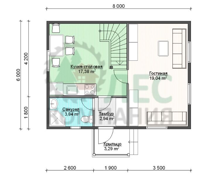 Услуги внутренней и внешней отделки, проведения наружных сетей, благоустройства и др., а так же строительство под ключ; стоимость домокомплекта из бруса других размеров или внесение изменений в проект - оговариваются индивидуально.