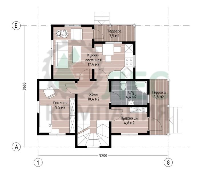 Услуги внутренней и внешней отделки, проведения наружных сетей, благоустройства и др., а так же строительство под ключ; стоимость домокомплекта из бруса других размеров или внесение изменений в проект - оговариваются индивидуально.