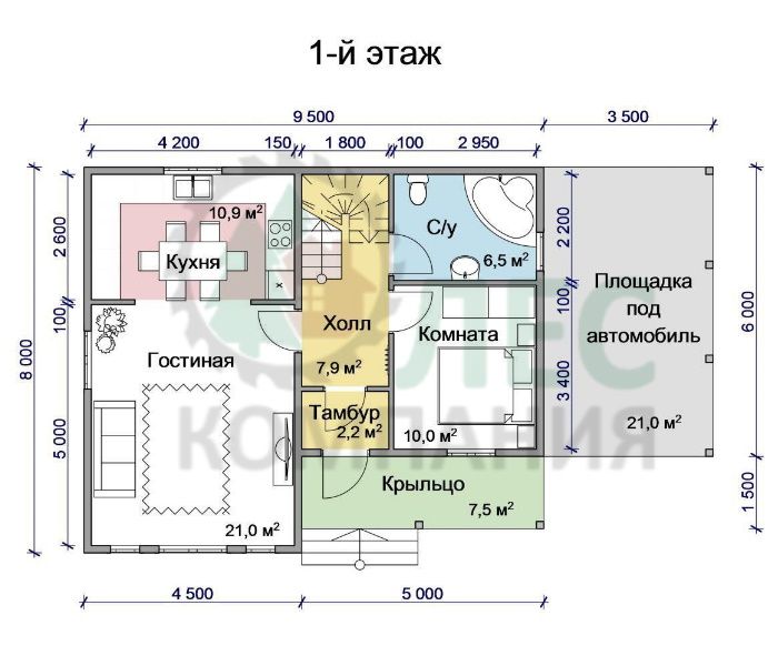 Услуги внутренней и внешней отделки, проведения наружных сетей, благоустройства и др., а так же строительство под ключ; стоимость домокомплекта из бруса других размеров или внесение изменений в проект - оговариваются индивидуально.