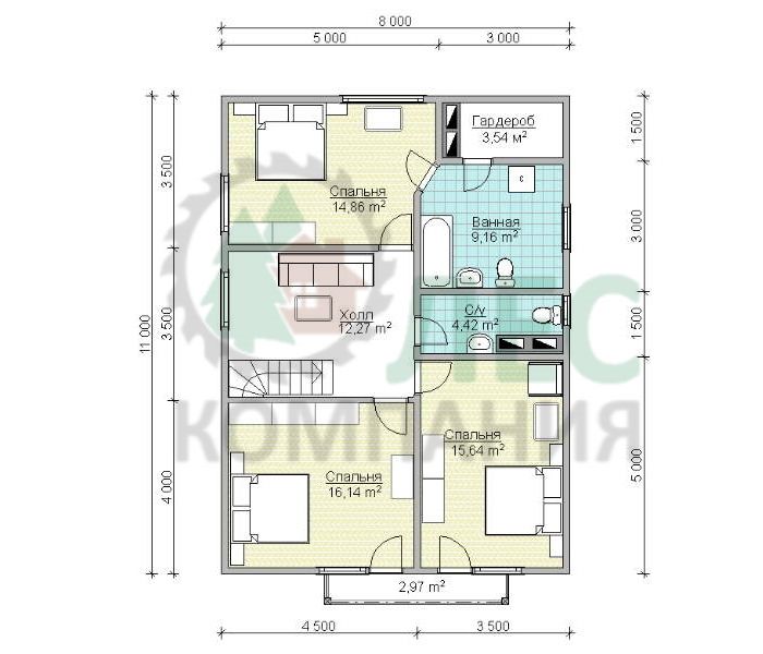 Услуги внутренней и внешней отделки, проведения наружных сетей, благоустройства и др., а так же строительство под ключ; стоимость домокомплекта из бруса других размеров или внесение изменений в проект - оговариваются индивидуально.