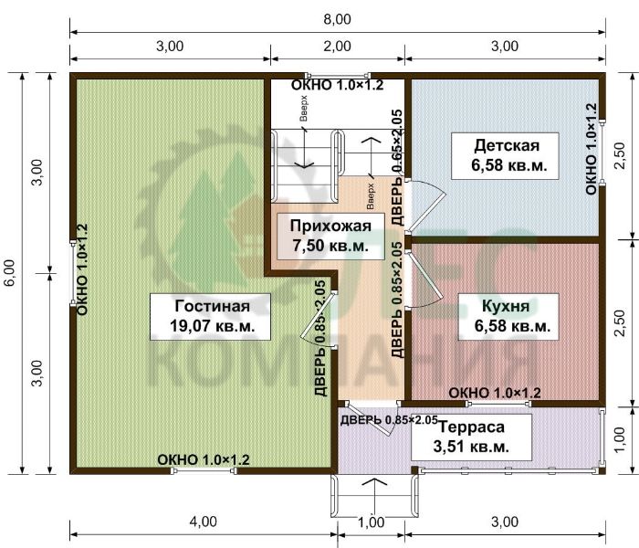 Услуги внутренней и внешней отделки, проведения наружных сетей, благоустройства и др., а так же строительство под ключ; стоимость домокомплекта из бруса других размеров или внесение изменений в проект - оговариваются индивидуально.